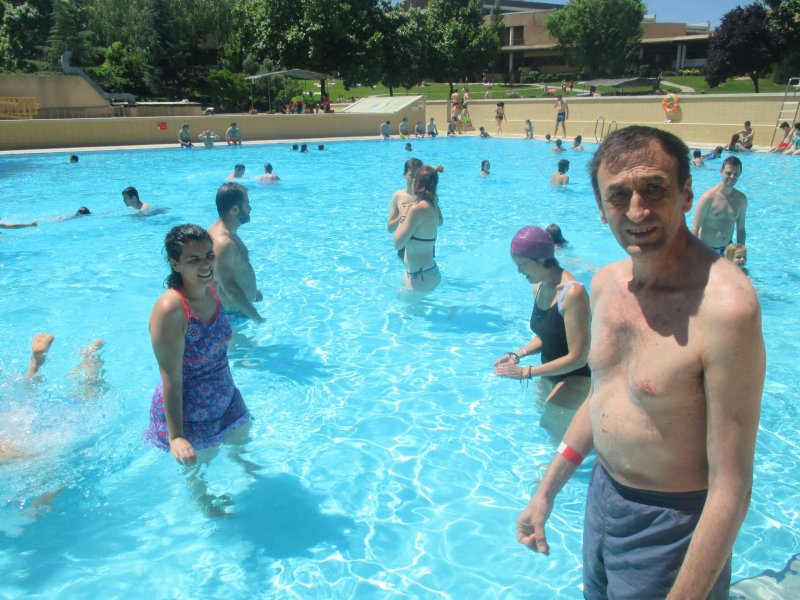 Una vez allí, nos cambiamos y directitos a la piscina. La verdad es que era enorme la zona de piscinas y a pesar de que había mucha gente, no tuvimos ningún tipo de problema con el espacio. Mientras nos bañamos, nos fuimos contando nuestros planes de verano: que si unos se iban al pueblo, otros a la playa, otros cuantos a Campo de Mirra, etc. Ya que era la penúltima actividad del curso.