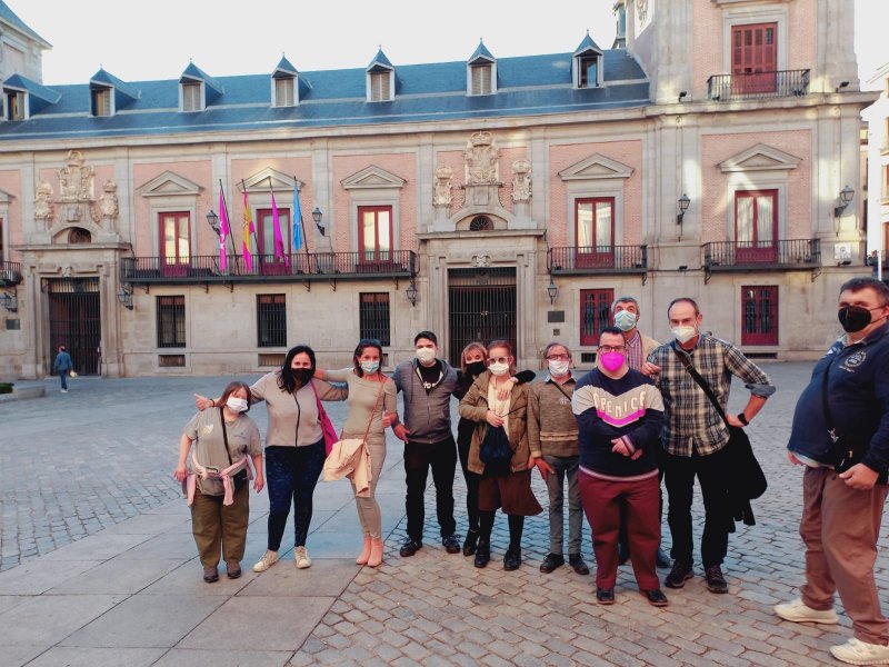 Por fin empezamos las actividades de ocio. El día 24 de octubre de 2021, el Servicio de Ocio y Convivencia puso en marcha las actividades, con mucha ilusión y alegría. Comenzamos la tarde con buen sabor, pues nos fuimos a la Puerta del Sol a comernos una napolitana dulce y sabrosa, típica de la pastelería y confitería La Menorquina. Entre abrazos y la gran alegría de vernos, continuamos con una enorme sonrisa hasta la Plaza Mayor, para fotografiarnos y dejarnos un bonito recuerdo de este día tan importante y emocionante. Paseamos por las calles céntricas de esta histórica y monumental ciudad, donde sobresalía el buen ambiente del grupo, las caras brillaban de alegría y los corazones latían sin parar. Y para continuar con esta estupenda tarde, el hermoso bocadillo típico de calamares nos esperaba en un bar de los soportales de la Plaza Mayor, donde pudimos contar nuestras vivencias y experiencias durante la pandemia y, por último, brindar y celebrar que todos volvemos a estar juntos, felices